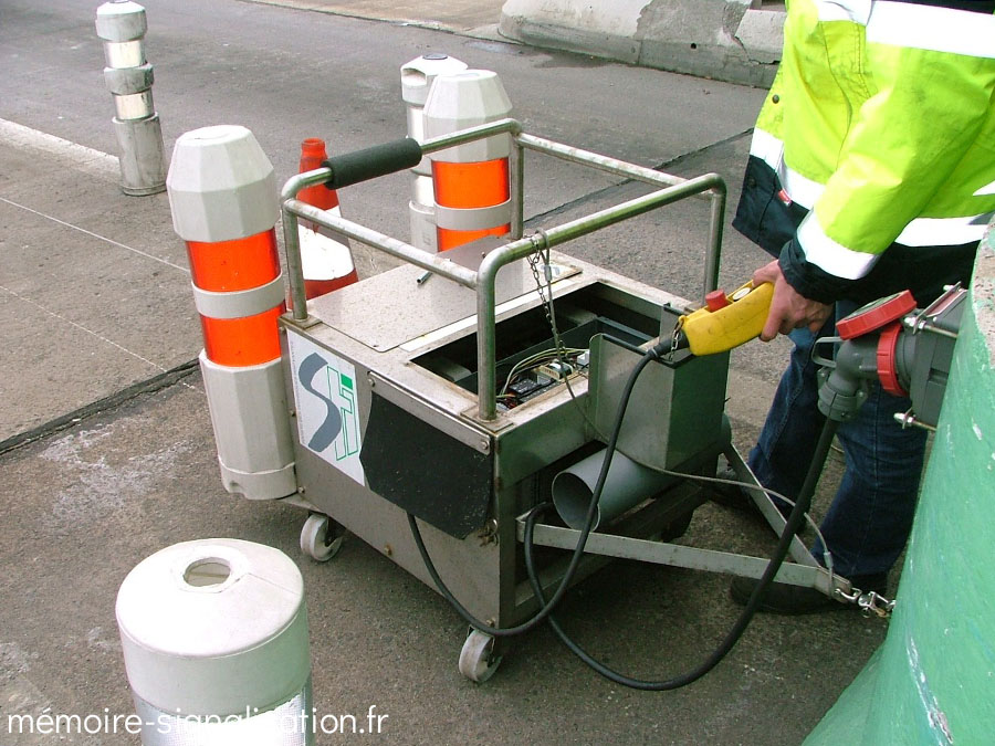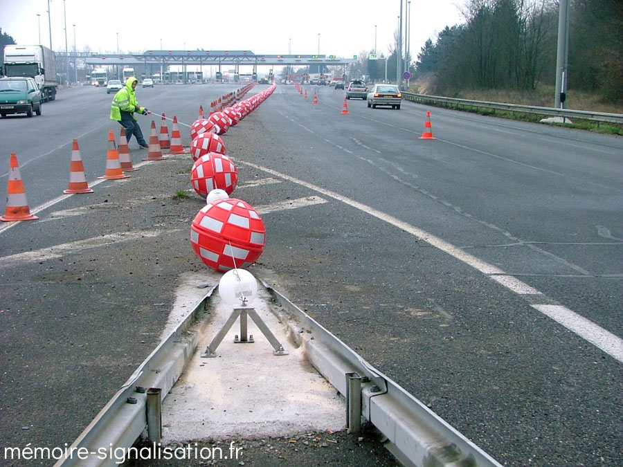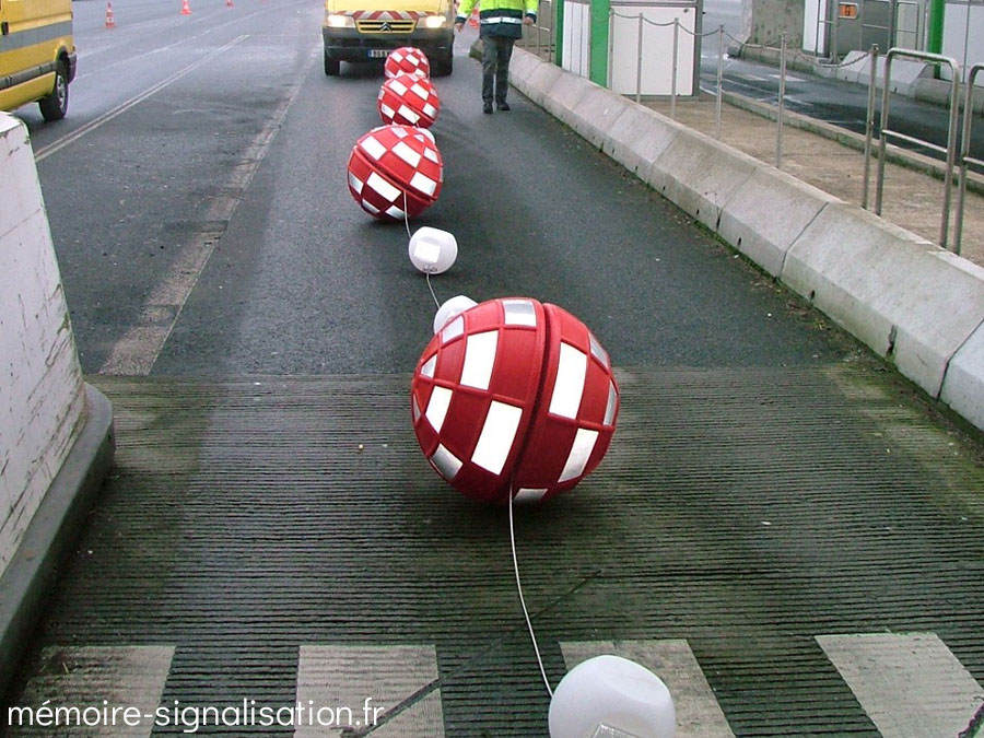 Au début des années 2000, STI a mis au point un nouveau système de balisage spécialement conçu pour les gares de péage. Ce dispositif, nommé répartiteur de trafic, est composé de balises sphériques rouges et de balises sphériques blanches plus petites, le tout monté sur un câble relié à un treuil mécanique ou motorisé. De cette façon, les balises pouvaient être détendues pour être translatées et ainsi changer la répartition des voies d'une gare de péage.