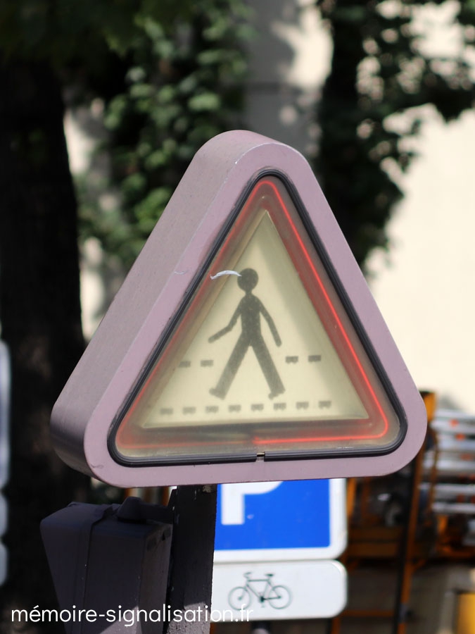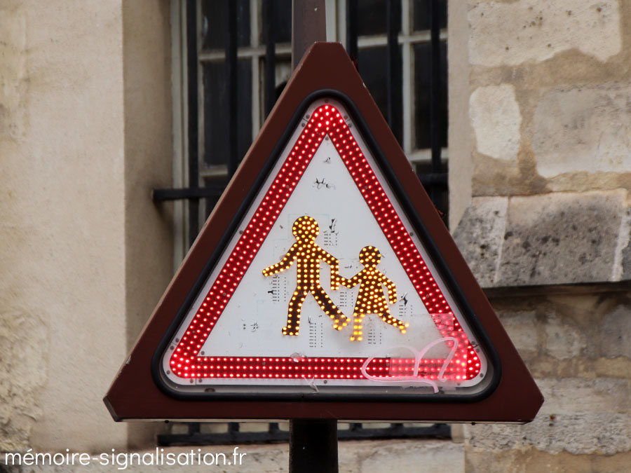 Panneaux de police renforcés : ils sont identiques aux panneaux de police permanents mais sont équipés d'un dispositif lumineux clignotant représentant les contours du décor du panneau et permettant d'attirer l'attention des automobilistes sur un danger. Plusieurs modèles de panneaux renforcés ont été conçus :
