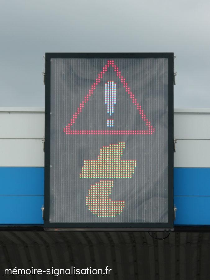 Panneaux dynamiques : ils permettent d'afficher un symbole lumineux uniquement en cas de nécessité. Une fois éteint, le panneau est neutre et n'affiche aucun signal. Le décor du panneau est réalisé par des LED rouges et blanches.