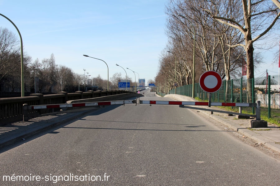 Premiers organes de signalisation : les panneaux à message variable indiquent la fermeture, avant et pendant la coupure. Deux types de PMV sont utilisés à Paris : les PMV pleine voie du BP, et les PMV JCDecaux placés en amont des portes d'accès, ainsi qu'en entrée de bretelle. Ces derniers sont équipés de prismes laissant apparaitre un panneau B0 (interdiction de circuler), et de trois lignes de texte, à l'origine à affichage par pastilles diffusantes et aujourd'hui rétrofitées par des LED.