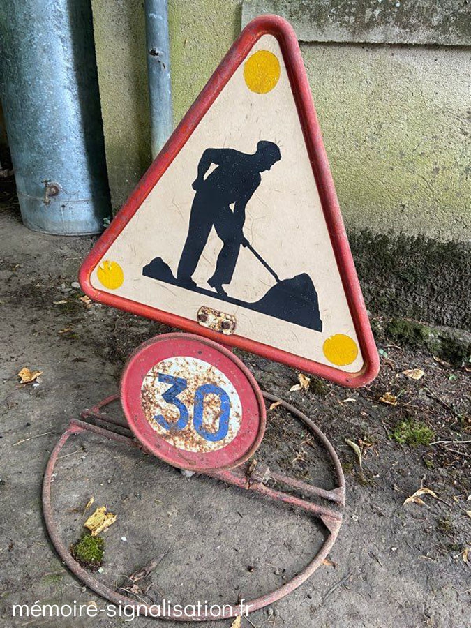 Les panneaux conçus par Burrial étaient semble-t-il réalisés en acier, mais aussi en fibres. Plusieurs modèles de support pour panneaux de chantier ont été conçus, dont un modèle à base ronde à partir de 1977.