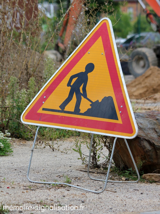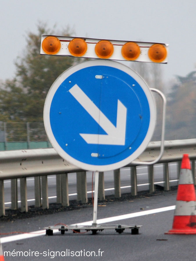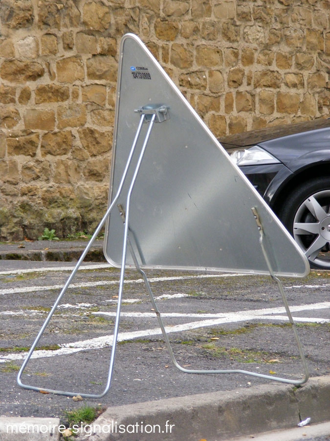 Crapie fabriquait dans les années 1990 ces panneaux temporaires avec support plat rangés dans des racks dans les véhicules de patrouille autoroutière et utilisés en signalisation d'urgence.