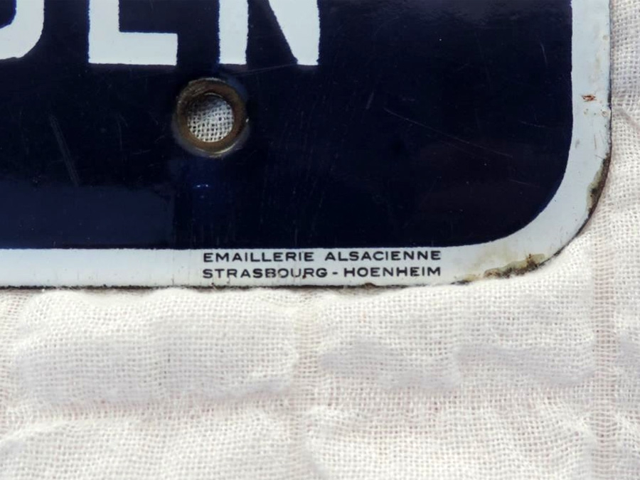La société Émaillerie Alsacienne a été fondée en 1923 près de Strasbourg. Son activité était centrée autour de la fabrication de plaques publicitares et de plaques de rue en tôle d'acier émaillée. Elle a été agréée par la commission permanente de signalisation pour sa fabrication de panneaux de signalisation routière en 1950, mais cette production est restée marginale face aux plaques publicitaires qui feront la réputation de l'Emaillerie Alsacienne.