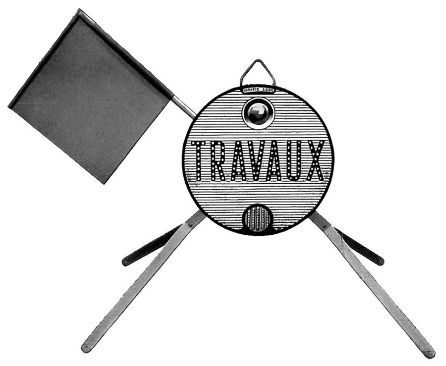 - panneau haute visibilité à fond strié avec feu au pétrole et cataphotes