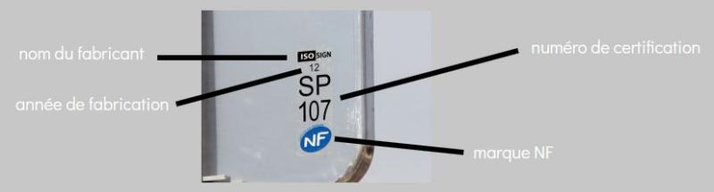 Le numéro de certification et la marque NF doivent obligatoirement figurer au dos de chaque panneau, accompagnés de son année de fabrication, et du nom du fabricant.