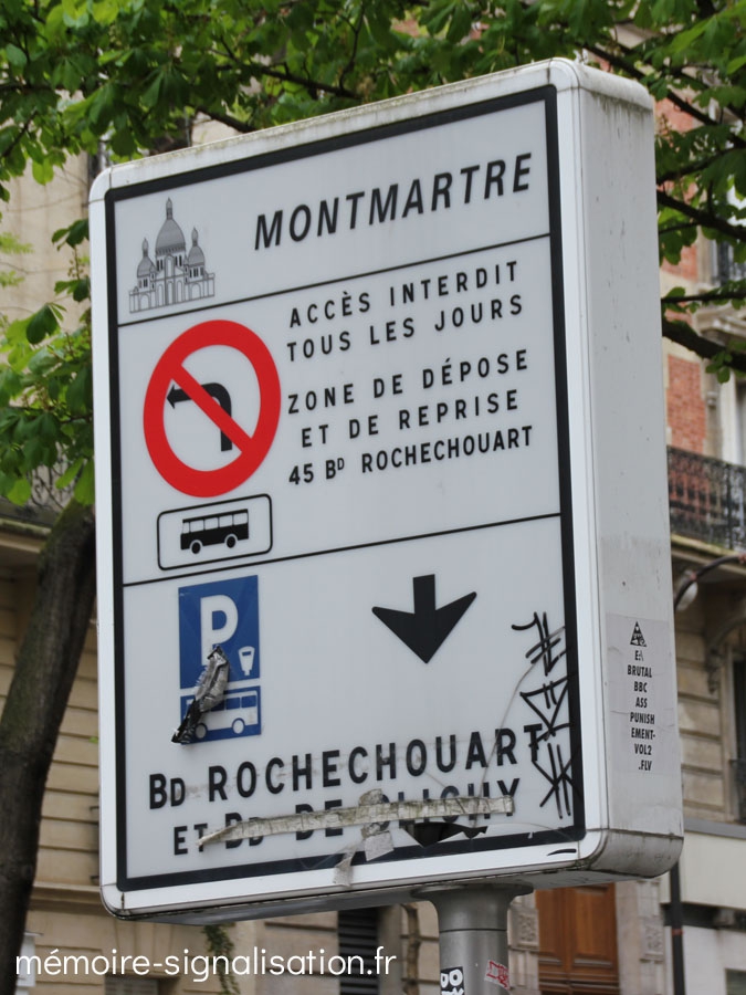 • Une version simple comportant le nom de la porte au sommet, ainsi que 4 lignes de 15 caractères. Ce modèle est placé en amont des accès au boulevard périphérique.