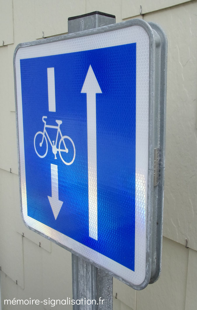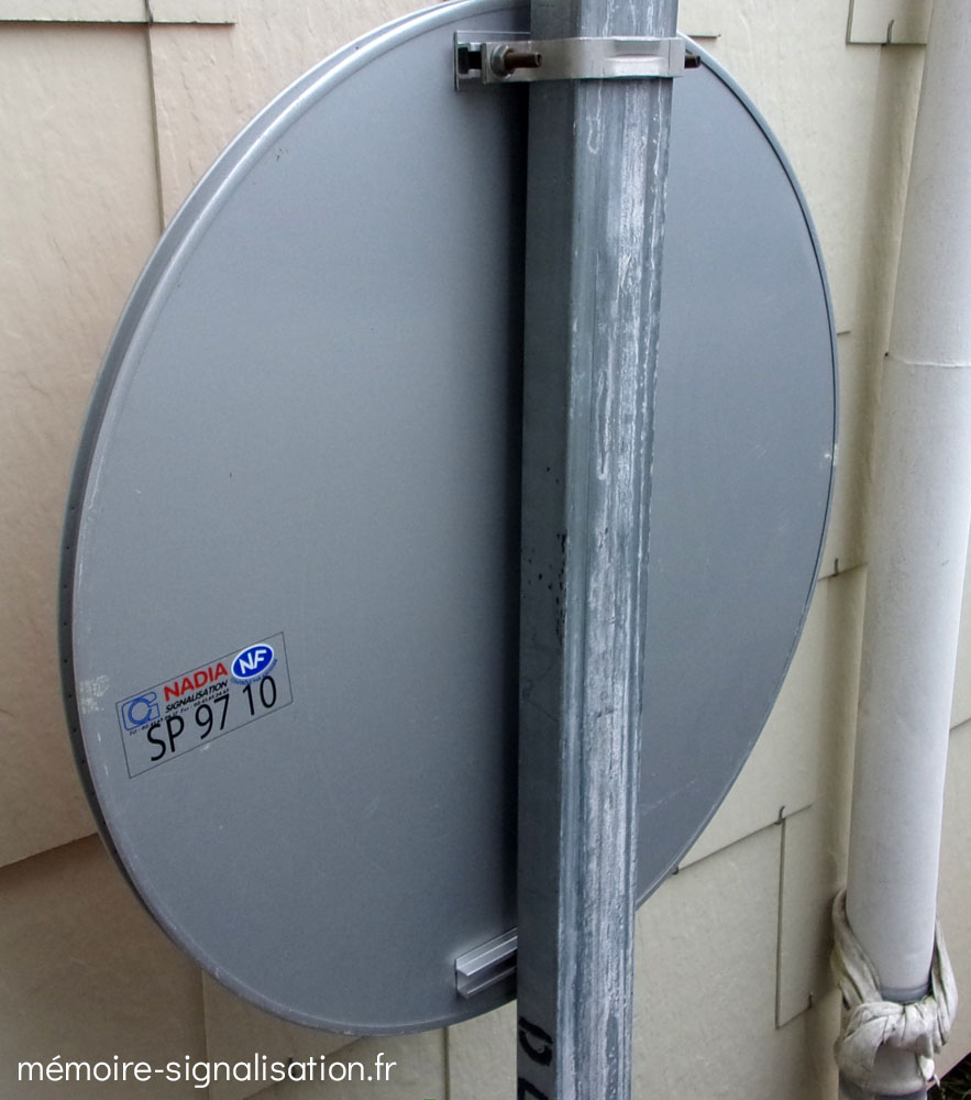 Les premiers panneaux conçus par Nadia Signalisation (certification SP 28) étaient en aluminium avec film rétroréflechissant. Ils étaient fixés par des rails arrières prenant toute la largeur du panneau avec une encoche pour l'insertion du boulon de fixation.