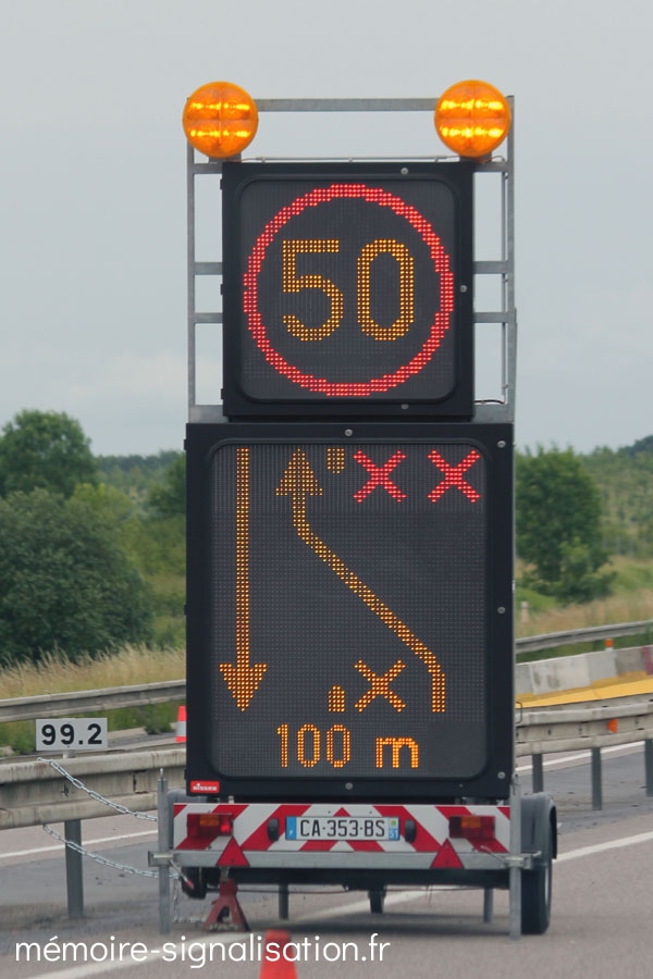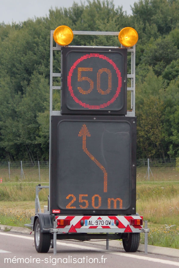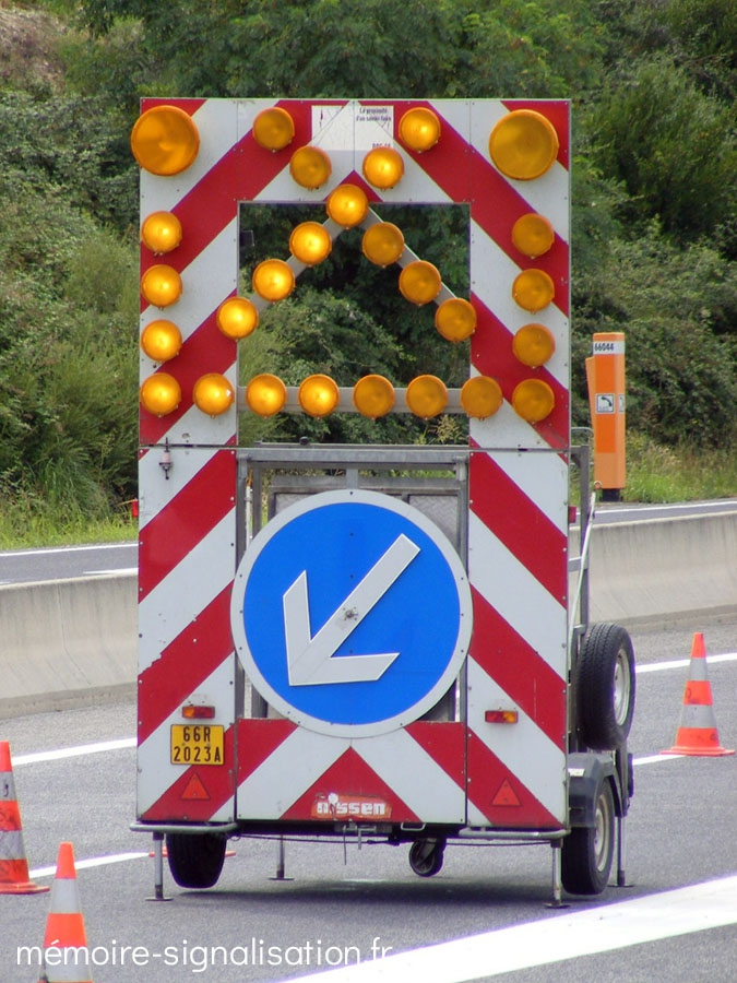 Une flèche lumineuse sous la forme d'un caisson en matière plastique composée de 8 feux à lampes halogène a été conçue au début des années 1990 par Nissen. Cette flèche pouvait être utilisée sur batterie montée sur un support autoroutier, ou montée sur un véhicule d'intervention en tant que signalisation embarquée.