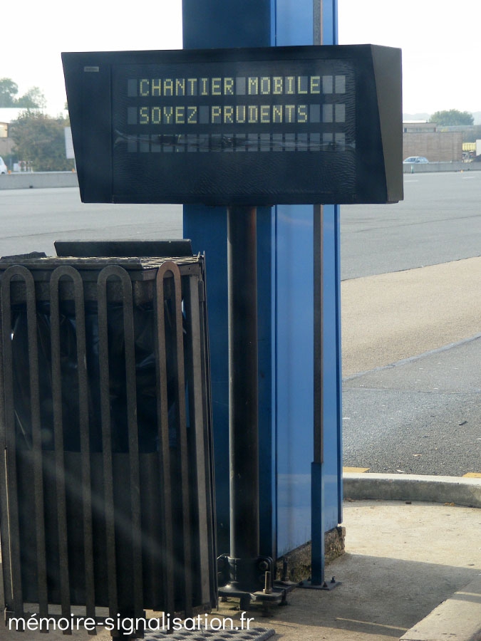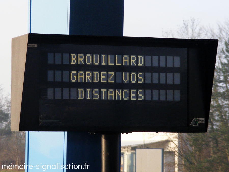 Un panneau à message variable (PMV), à technologie cristaux liquides, a été conçu pour le compte de la Sanef au milieu des années 1990. Ces PMV étaient installés à chaque voie des gares de péage de l'autoroute A4, et donnaient une indication sur les conditions de circulation. Ils ont été déposés en 2010.