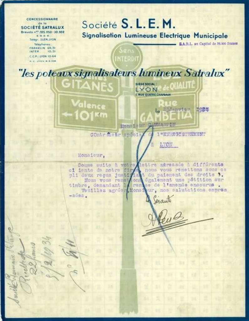 Satralux était un fabricant de panneaux de signalisation fondé au début des années 1930 et basé dans l'Allier. Un panneau métallique fixé sur un mât ou en drapeau directement sur les façades des bâtiments a été mis au point à partir de 1932. Il était composé de plaques en verre indiquant une destination ou une localité accompagnée d'une partie publicitaire. Le tout était rétro-éclairé au moyen d'ampoules à incandescence.