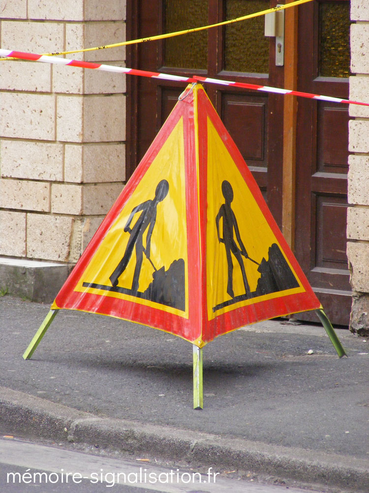 Le tripode se repli au moyen d'un anneau fixé au sommet de la pyramide faisant également office de poignée. Une fois replié, le panneau se range dans une housse de transport. Une balise lumineuse peut également être fixée à son sommet.